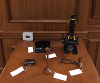 Large set of bronze Spanish cup-weights, 17th-18th cent., from the quarter-ounce to 16 Spanish pounds, in ornamental bronze case with hinged lid and hasp, i.e. 11 weights including the case which forms the largest weight, totaling 32 Sp.lbs. (or 64 "Marks" of Castile).